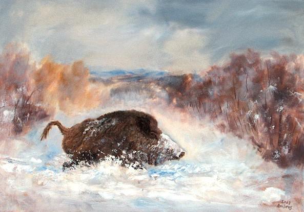 Képzőművész, aki vadászik, vagy vadászó képzőművész. Lehetne így is jellemezni Ambrus Lajost, a Kecskemét mellett, Ballószögön lakó festőművészt. Szakállas, erős alkata mindig feltűnt a Gemenci Alkotótáborban. Beszélgetéseinkkor kitűnt, hogy nem csak festi, rajzolja a természetet, de aktív vadászként óvja, vigyázza is. Immár 13 éve tagja, s jó ideje gazdasági felelőse a Kecskeméti Petőfi Vadásztársaságnak.